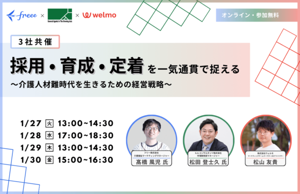 【3社共催セミナー】採用・育成・定着を一気通貫で捉える ~介護人材難時代を生きるための経営戦略~