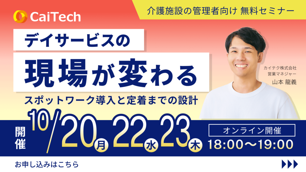 この分野をリードしているのが、介護・看護領域に特化した人材サービスを提供する カイテク株式会社です。同社はスポットワークのマッチングから、現場への導入支援、さらには本採用へのつなげ方まで、介護事業所の採用課題を幅広くサポート。すでに全国で約3千のデイサービス事業所が導入しており、多くの施設が「急な欠員への即応性」と「長期的な採用強化」を実現しています。