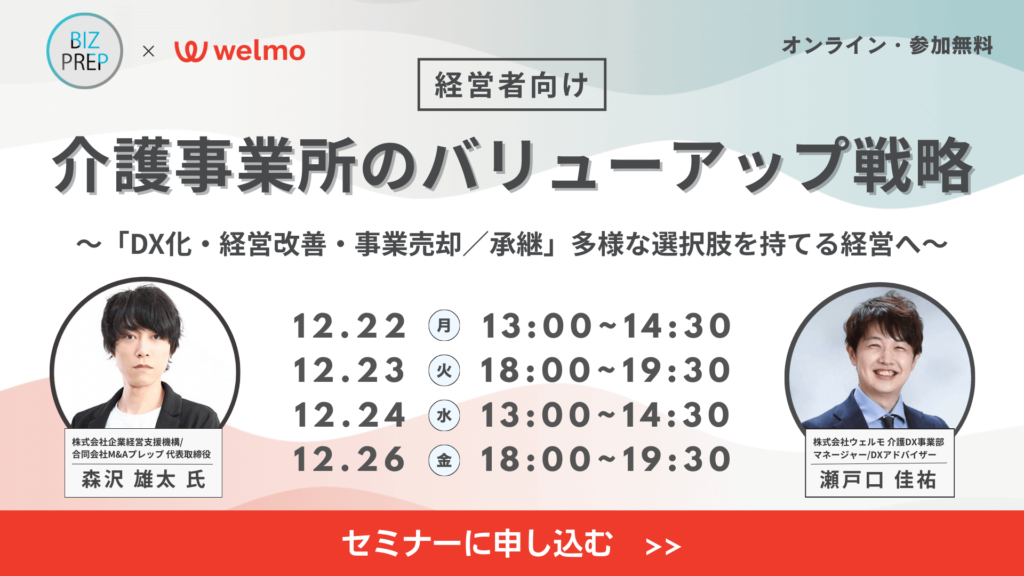 こうした中立的な立場から、介護事業所の価値をどのように高め、未来にどのような選択肢を持ち得るのかを、実例を交えて具体的に解説いただく。