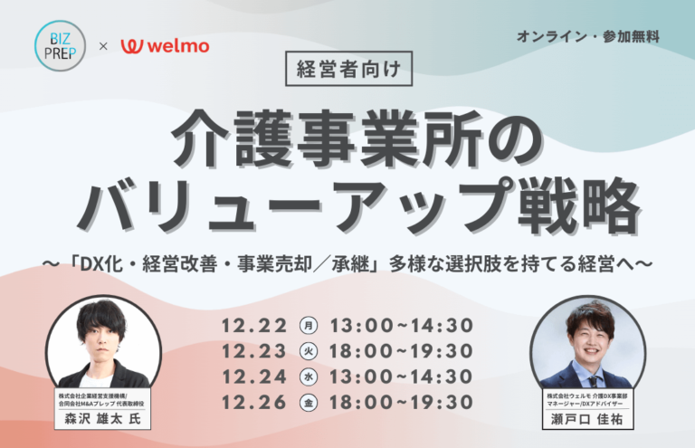 【経営者向け】介護事業所のバリューアップ戦略〜「DX化・経営改善・事業売却/承継」多様な選択肢を持てる経営へ〜
